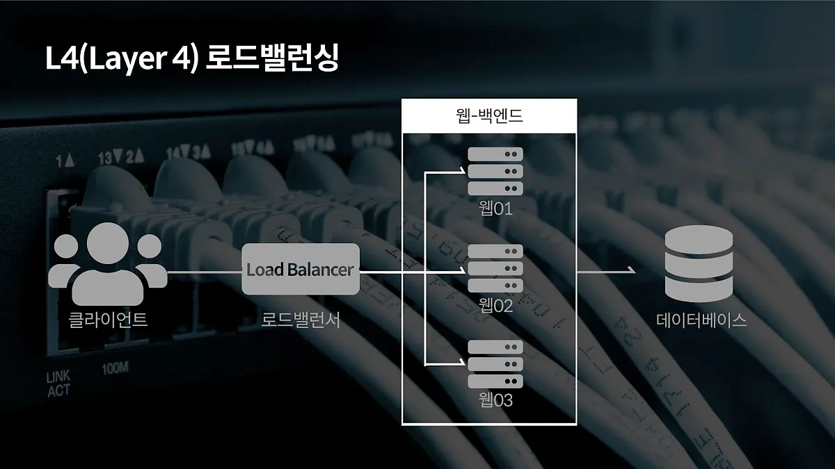 L4 로드 밸런서는 네트워크 계층(IP, IPX)이나 트랜스포트 계층(TCP, UDP)의 정보를 바탕으로 로드를 분산한다.