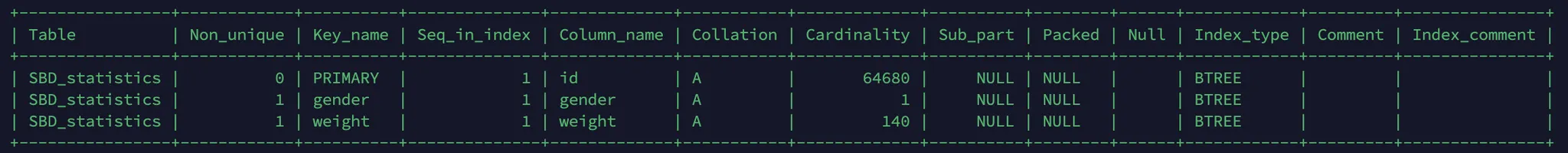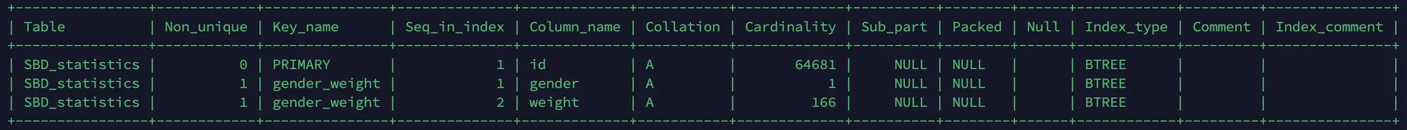 ALTER TABLE SBD_statistics ADD INDEX gender_weight_idx (gender, weight);