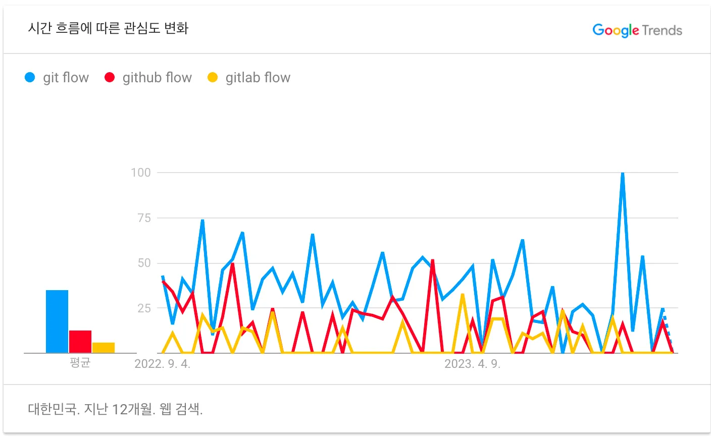 Git Flow, Github Flow, Gitlab Flow 관심도 변화