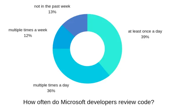Microsoft의 개발자라면 매일 코드 리뷰를 해야 합니다. Microsoft의 전체 직원 수는 14만 명이고, 이중 44%인 6만 명에 이르는 개발자의 75%가 매일 코드 리뷰를 하고 있다고 알려져 있습니다.